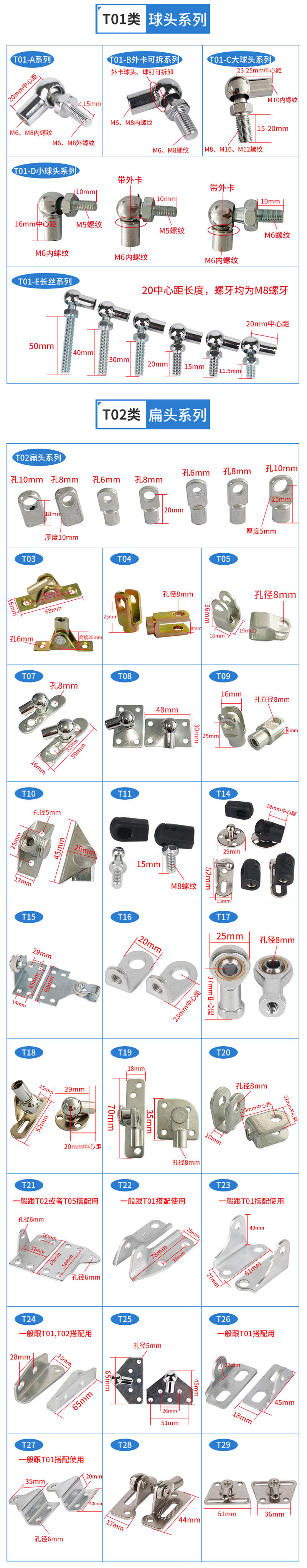 我司氣彈簧分體式設(shè)計,兩頭接頭均可以互換,接頭種類齊全,具體規(guī)格如下